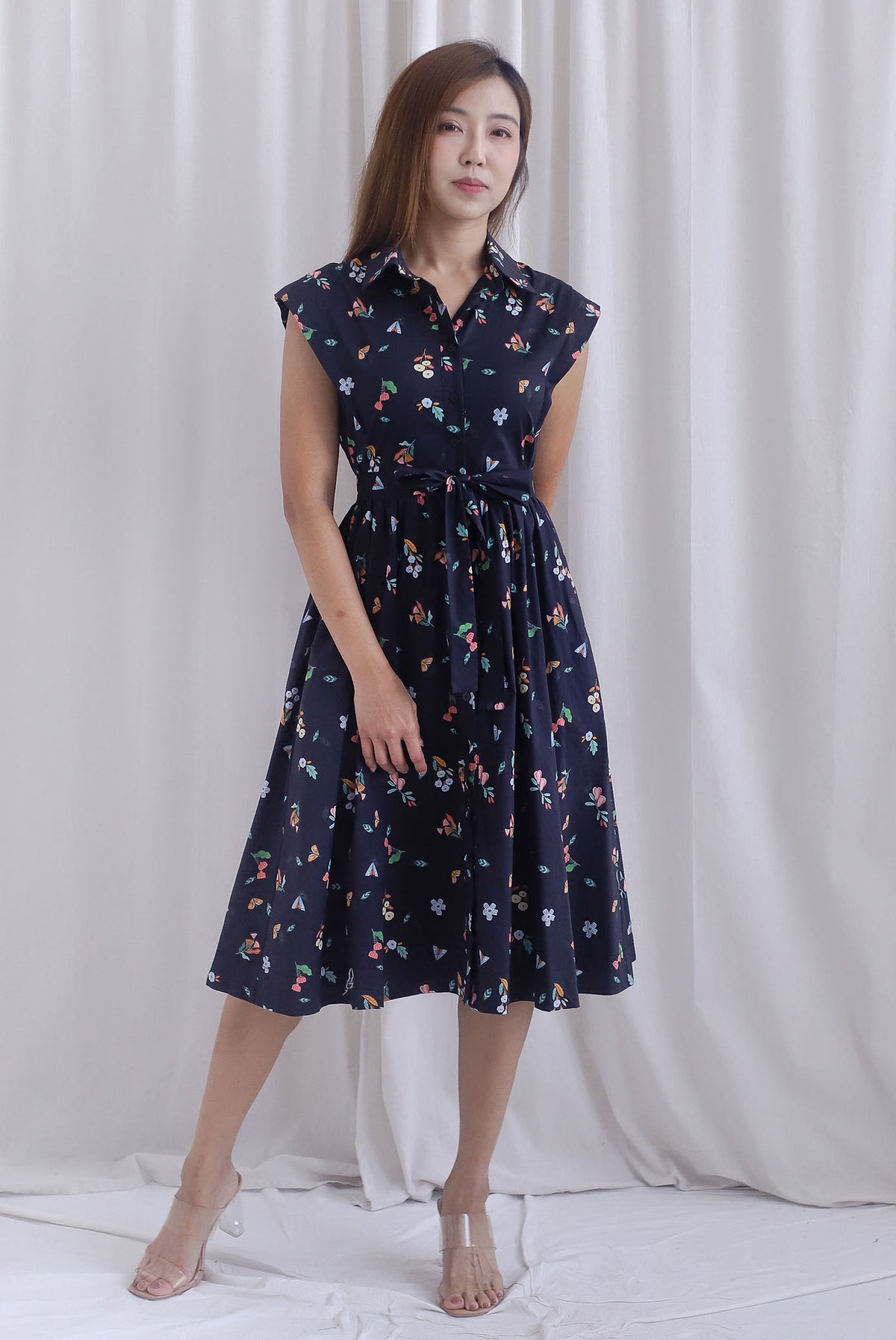 Garden Prints Buttons Down Shirt Dress In Midnight Blue
