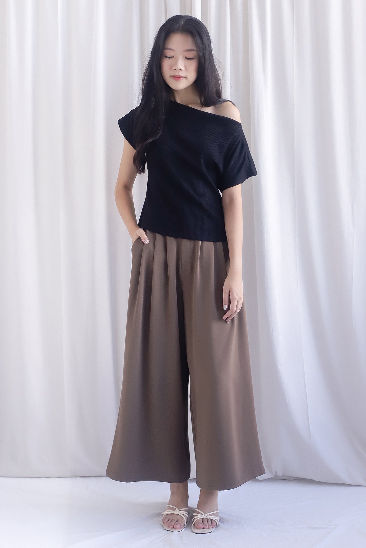 Cadence Frill Off Shoulder Smocked Top In Mocha