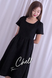 Chelle Tweed V Wastline Midi Skater Dress In Black